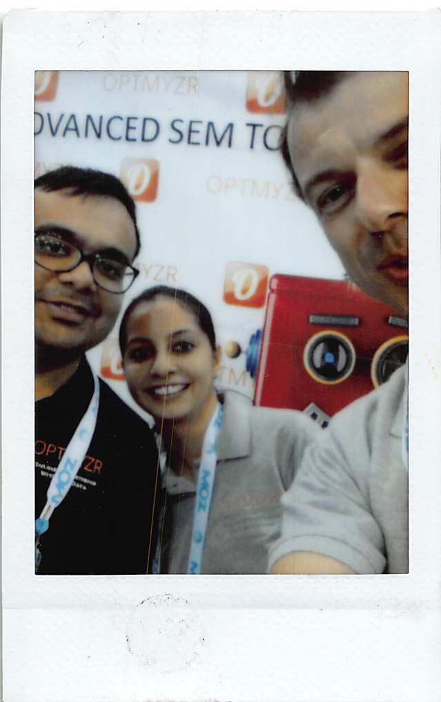 Manas and Geetanjali travel to Palo Alto where they join Fred for a few weeks of in-person product design. Here they are at our booth at SMX West in San Jose, where we were a first-time sponsor.